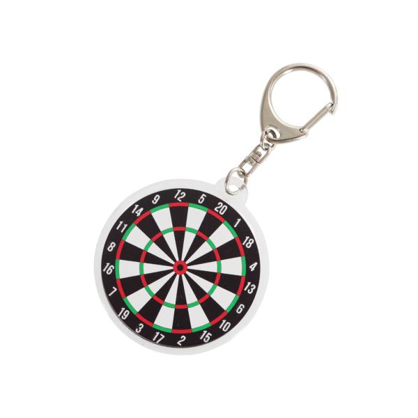 プテラファクトリーxS4コラボのダーツボード型キーホルダー。ダーツボードのデザインを両面に印刷してます。鍵にだけでなく小物やバッグに取り付けて、日常生活をさりげなくダーツで彩ろう。本体部分:直径約6cm厚さ:3.5mm材質:ポリカーボネート製