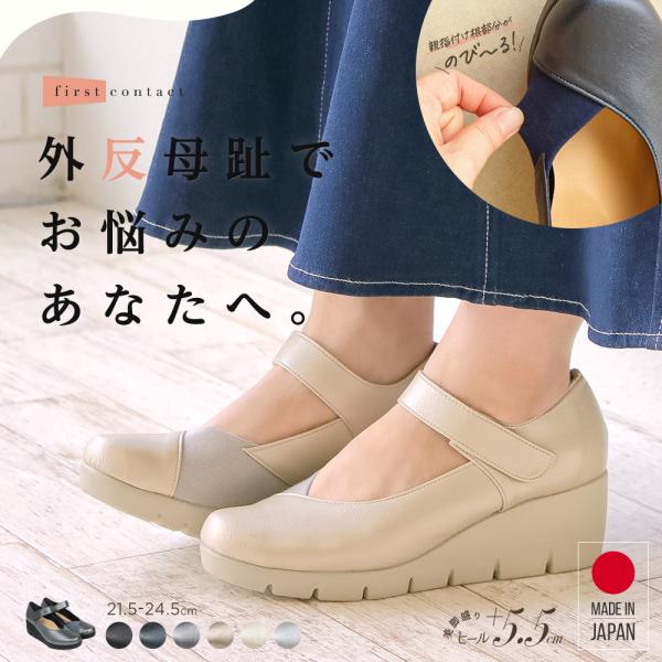 パンプス 痛くない 抗菌 消臭 日本製 外反母趾 ウェッジソール ウエッジソール 靴 レディース 歩きやすい 黒 ローヒール コンフォートシューズ 5.5cm 爆買