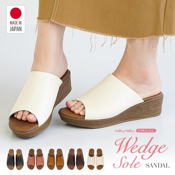 サンダル レディース 日本製 つっかけ 旅行 ウェッジソール 歩きやすい 痛くない 軽量 ミュール 黒 ブラック ブラウン ベージュ ピンク ホワイト 白 5350 爆買