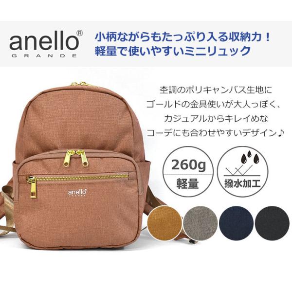 レディース ミニ リュック リュックサック ミニリュックサック バッグ おしゃれ オシャレ かわいい 可愛い 大人 大人女子 女子 女性 小さめ 小さい 軽い 軽量 無地 シンプル ナイロン アネロ グランデ ブランド ピンクベージュ オレンジベージュ グレー ネイビー ブラック 黒