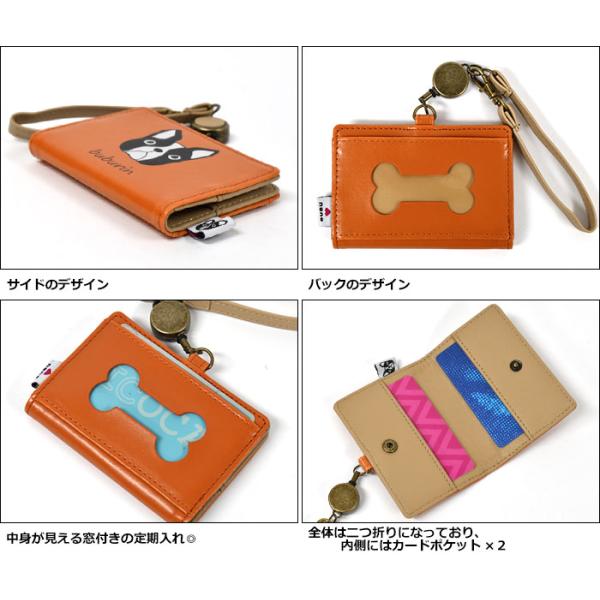 レディース 定期入れ カードケース ケース icカード ストラップ付き ストラップ 1枚 2枚 3枚 リール リール付きパスケース 合成皮革 合皮 革 レザー かわいい 可愛い おしゃれ オシャレ シンプル 小物 雑貨 犬 いぬ イヌ 犬グッズ グッズ フレンチブルドッグ ボストンテリア キャラクター ベージュ ブルー オレンジ