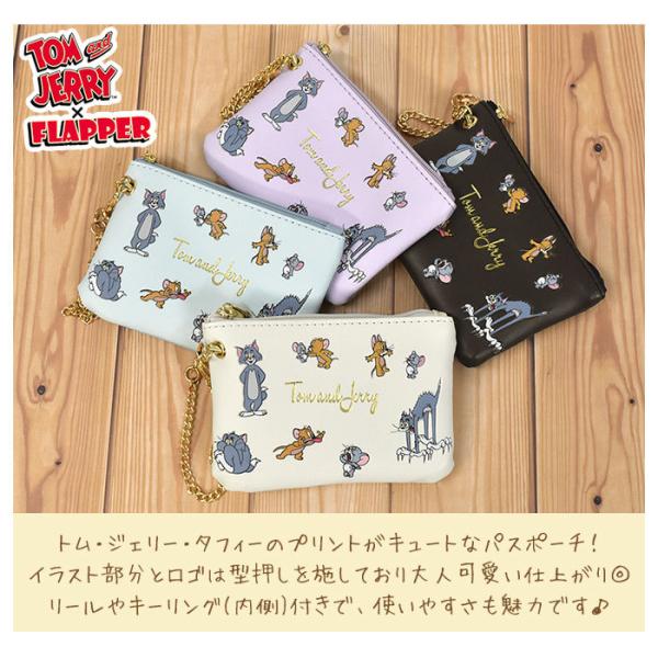 トムとジェリー パスケース 定期入れ グッズ レディース メンズ リール おしゃれ 小銭入れ キーケース ポーチ/FLAPPER フラッパー/総柄 リール付き パスポーチ