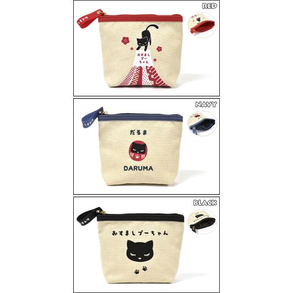 レディース 女性 コットンキャンバス 帆布 布 生成り 舟形 ミニポーチ ミニ コンパクト 小さめ 小さい 小物 軽い 軽量 コスメポーチ 化粧ポーチ 化粧入れ 小物入れ 可愛い かわいい おしゃれ オシャレ グッズ 猫グッズ 雑貨 猫 ねこ ネコ 黒猫 キャラクター プーちゃん おすましプーちゃん 和風 日本 JAPAN 富士山 ダルマ だるま アイボリー ネイビー ブラック 黒