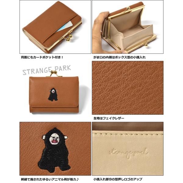 財布 レディース 小さめ おしゃれ 三つ折り財布/Strange Park ストレンジパーク/フェイクレザー コミカルアニマル 刺繍 がま口 三つ折り