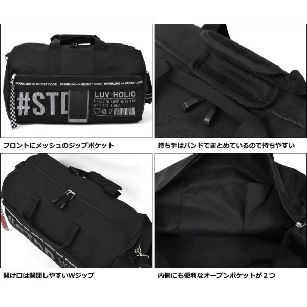 ボストンバッグ レディース おしゃれ 大容量 旅行用 修学旅行 スポーツ ポリキャンバス フラッグ柄チャーム メッシュポケット 2way