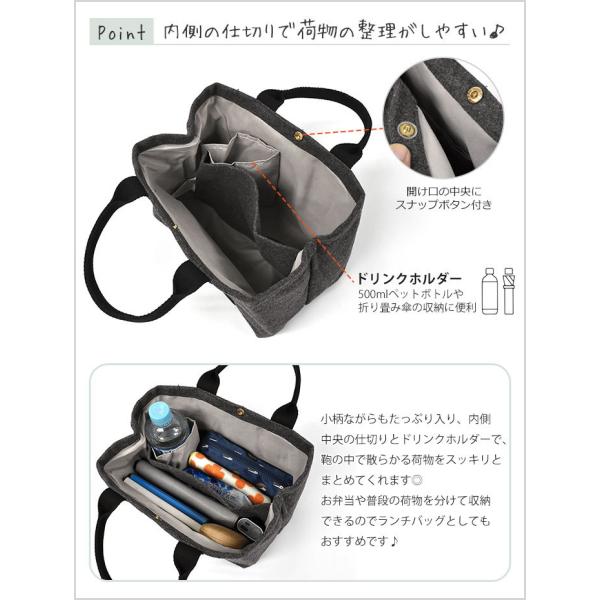 レディース 女性 女子 小さめ 小さい ミニ トートバッグ ポケット たくさん 多め 仕切り 仕切りあり 仕切り付き トート バッグ 手提げバッグ ハンドバッグ サブバッグ ミニバッグ ランチバッグ ランチバック ランチトート ランチトートバッグ 弁当 B5 無地 シンプル カジュアル 軽量 軽い かわいい 可愛い おしゃれ オシャレ 大人 大人可愛い 大人女子 自立 自立する グレー ネイビー