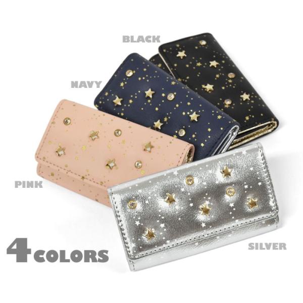 キーケース レディース おしゃれ フェイクレザー 星柄 スタッズ