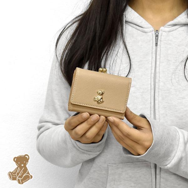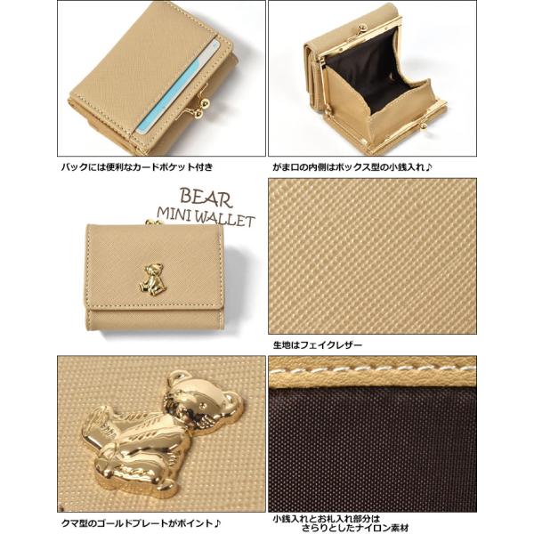 ミニ財布 財布 レディース 小さめ 三つ折り財布 おしゃれ フェイクレザー くま プレート がま口 三つ折り ミニ