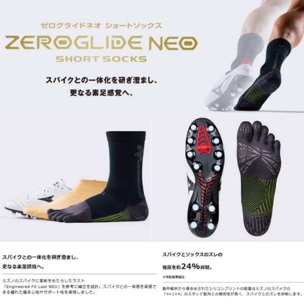 <ネコポス発送 送料無料> ミズノ(MIZUNO) P2MXC010 サッカー ストッキング ZEROGLIDE NEO ゼログライド ネオ ショートソックス 5本指タイプ 26SS