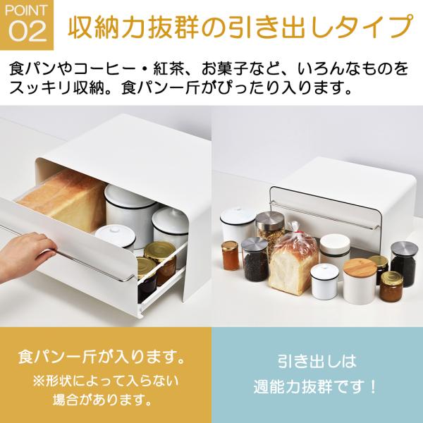 引き出しスムーズ。食パン1本がすっぽり入る、収納力抜群の引出し。