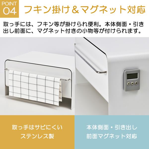 スっと引き出せて、中身がパッと見渡せる。トースターがのるキッチン収納ケース