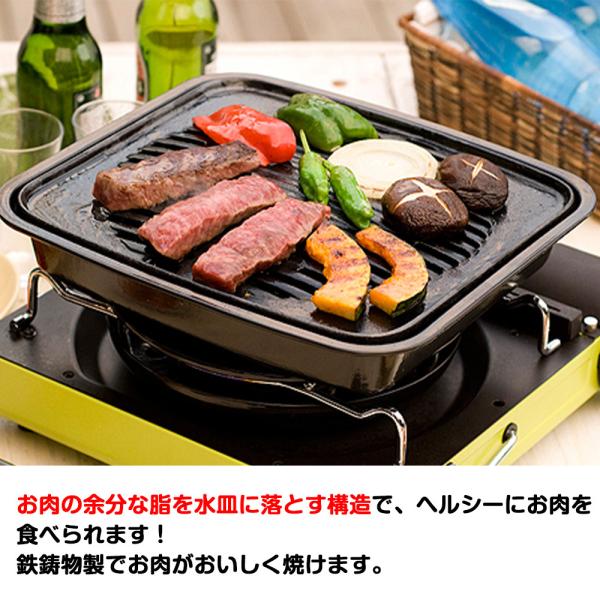 お肉の余分な脂を水皿に落とす構造でヘルシーに食べられます!