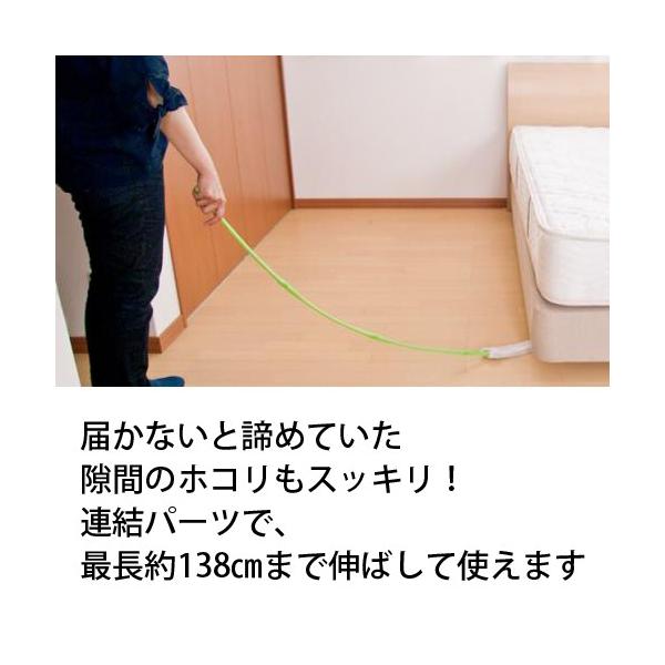 連結式の柄を組み合わせることで、手近なデスクまわりからベッドの下まで簡単に入り込みます。