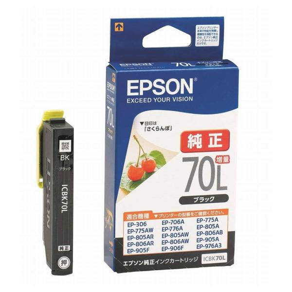 【ネコポス配送】エプソン 純正インク ICBK70L ブラック 増量(目印:さくらんぼ) 純正 高品質 大容量 セット 特価 パック