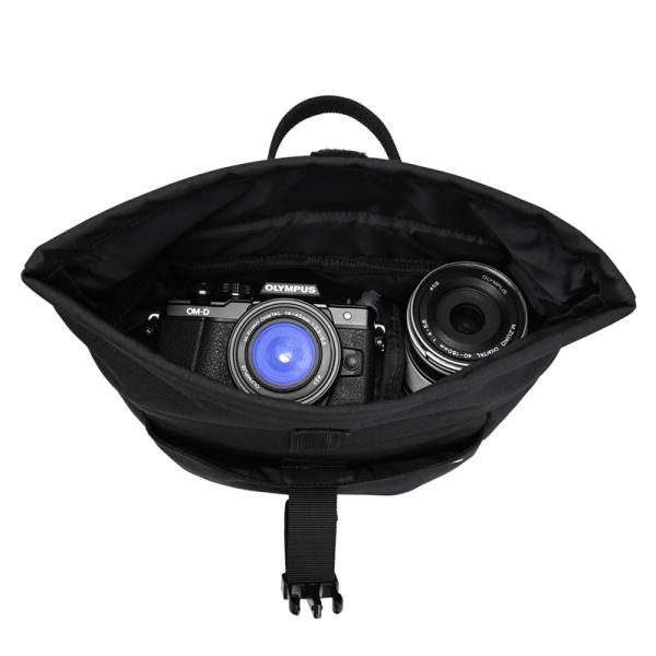 ミラーレス一眼にスペアバッテリー等の小物をピッタリ収納。