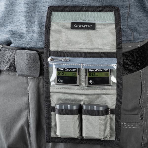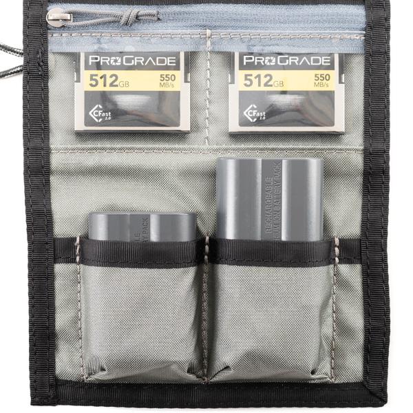 CFastカードかCFexpress Type Bカードを2枚、もしくはSDカードかCFexpress Type Aカードを4枚に加えて、一眼レフ用またはミラーレス用バッテリーを2本。