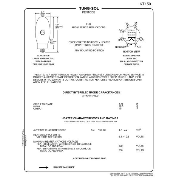 70ワットの巨大な版の散逸によって、Tung-Sol KT150は今まで作り出される最も強力な八角形のビームテトロード。
