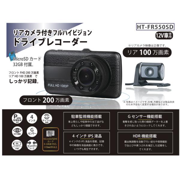 【美品 箱汚れ有】ドライブレコーダー 前後カメラ 【microSDカード付】リアカメラ フルハイビジョン FHD 200万画素 Gセンサー HDR サイクル録画 駐車監視機能