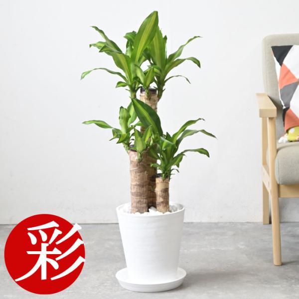 観葉植物 本物 幸福の木(ドラセナ・マッサンゲアナ) セラアート鉢 7号鉢 室内用 インテリア おしゃれ 開店祝い お祝い 新築祝い 母の日