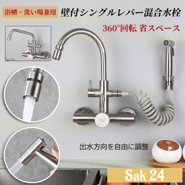 蛇口 シャワーヘッド キッチン水栓 壁付シングルレバー混合水栓 360°回転 金具 省スペース ハンドシャワータイプ 浴槽・洗い場兼用