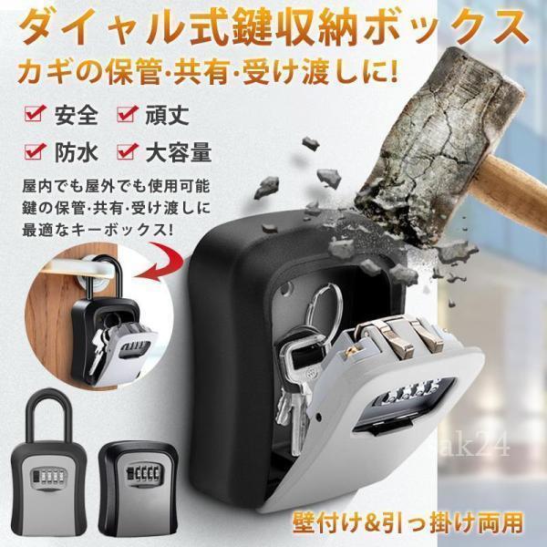 キーボックス 屋外 ダイヤル式 壁掛け 防水 セキュリティ U字ロック 防犯 玄関 4桁鍵 暗証番号 大容量 操作簡単 ロックポケット 鍵収納 引っ掛け式