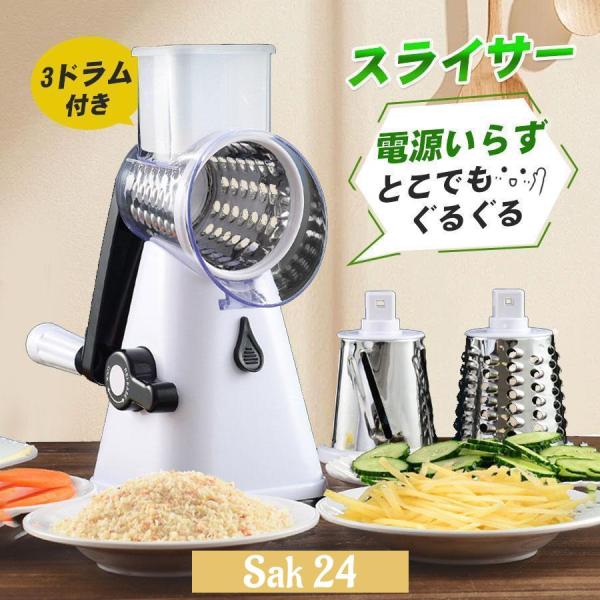 スライサー 調理 すりおろし 野菜カッター スライス 細切り 千切り 多機能 3in1 くるくるスライス 時短 簡単 便利 野菜 1台3役