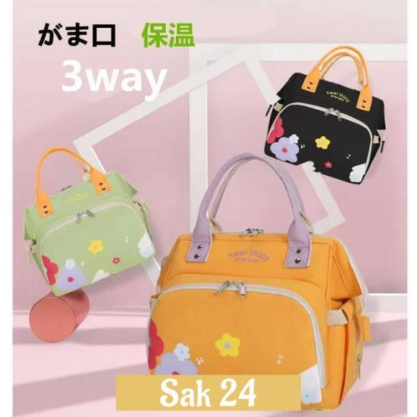 3way がま口 マザーズバッグ トートバッグ リュックサック ショルダーバッグ 花柄 保温 ママバッグ マタニティーバッグ 出産お祝い