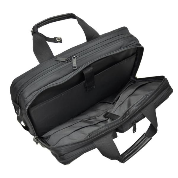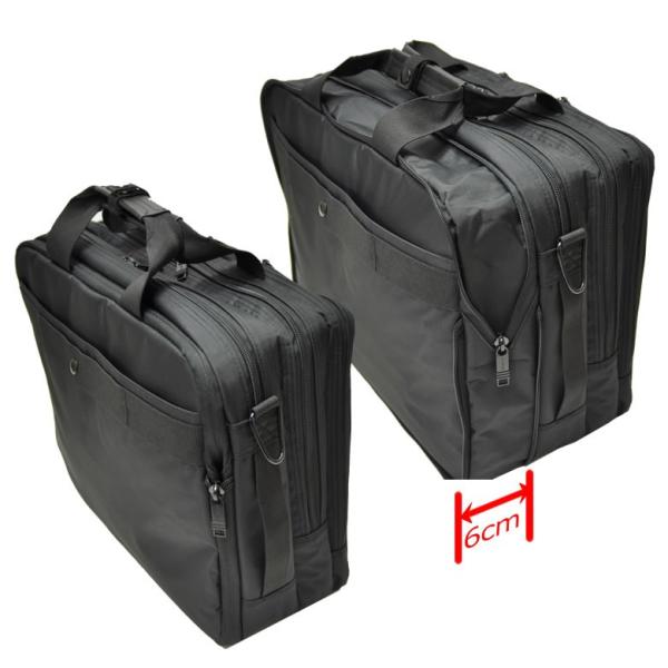 ブリーフケース。背面側のルームが7cm幅から13cmに広がるため