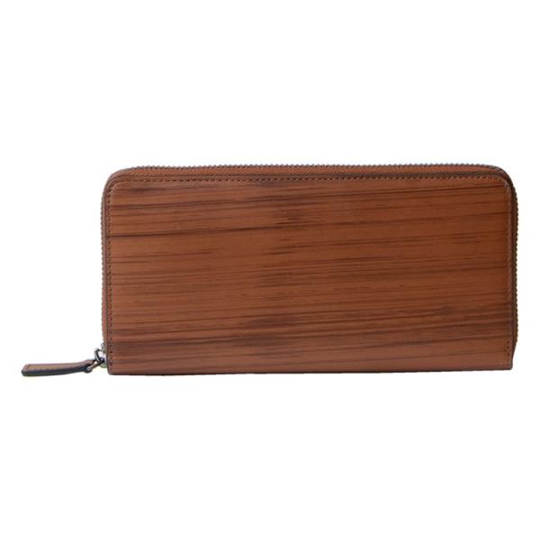 「革なのに木の温もりが伝わる木目模様」ブラックは木炭、ブラウンは柾目(まさめ)を意識した木目調に仕上げたRYU' ONEのWDシリーズ。本物の木と同様に一つ一つ違った表情をお楽しみ下さい。「木目を見ているだけで血圧が下がる」との論文があるほど、木目は身体的・精神的な効能を与え心が安らぐと言われています。ジャバラが大きく開くラウンドファスナー長財布。カード・お札・小銭が一度に見渡せます。仕切り付き小銭スペース、カードポケット×15、フリーポケット×2でしっかり収納。