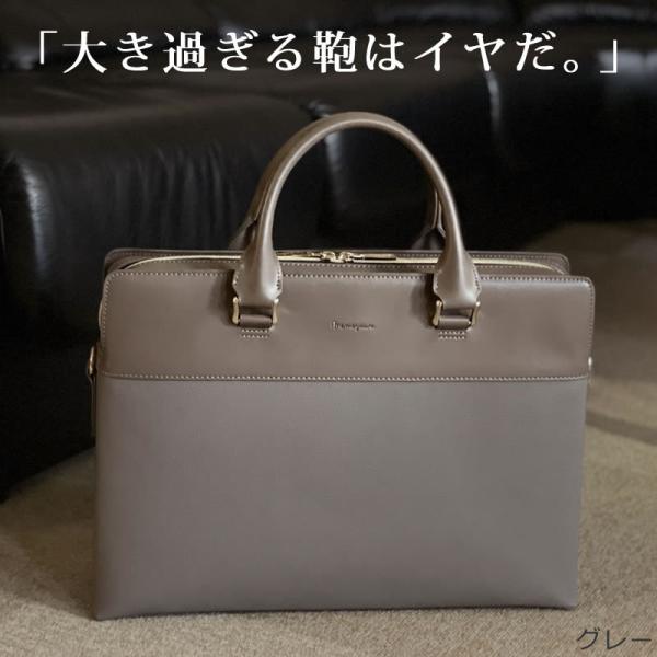かっちりなのにおしゃれ。シャープなシルエットは資料やファイルをサッと出せる余裕を与えてくれる。改まった仕事モードに相応しい、凛とした佇まい、そんなビジネスバッグです。