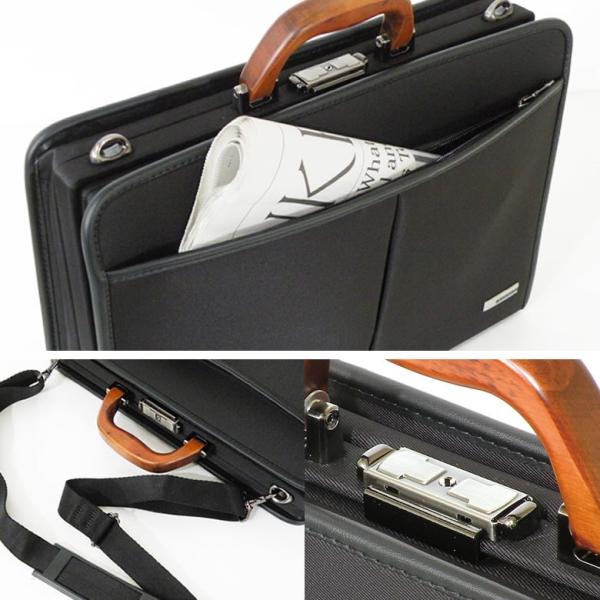 ・ブリーフケース A4 ブランド 人気・鞄産地・豊岡の、鞄職人が手がけた自信作。高い品質を誇る日本製・・・この商品には「信頼マーク」が付いてます。・多彩なポケットと高い機能性、素材や縫製を徹底的に追及したBAGGEX (バジェックス)旭(アサヒ)シリーズ。。・まず特筆すべきは、なんとも素朴な味わいがある「天然木ハンドル」。日本人の精神を象徴する樹木「桜」で作られたハンドル。手に取ればじっくりと馴染む質感と握りやすさが魅力。・ダレスバッグ風の口枠フレームはワンタッチ開閉が可能で、口開きが良く荷物の出し入れがスムーズに行えます。・鍵つきでセキュリティ能力が高い点も嬉しい。・B4フ書類サイズ対応で本体内部は多彩なポケットが自慢、書類やファイル収納に最適です。2wayショルダーベルト付き。