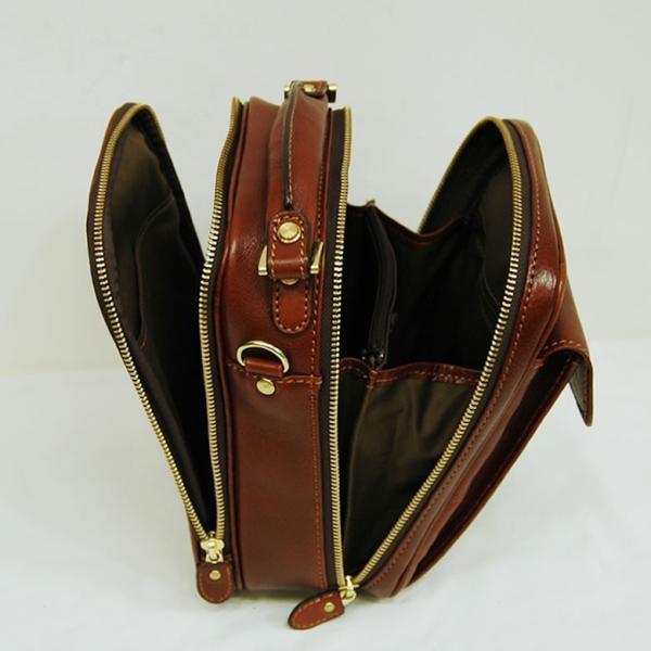 ・素材は使う程味が出るオイルで仕上げた本ヌメ牛革製 ・深みのあるナチュラルブラウン、個性的なステッチ使いと玉縁はイタリアハンドメイドの雰囲気です ・高い職人技で生み出された日本製、作り手の想いが詰め込まれた傑作品です ・縦長のボックス型のフォルムは小さいのにポケットが多彩で抜群の収納力。 ・ショルダーストラップは取り外しができるのでスタイルに合わせて使い分けが可能です ・カードホルダーが充実しているセカンドルーム、仕切りが付いて高い収納力を誇るメインルームの2ルーム仕様 ・用途に合わせた多彩なポケットレイアウトが使い勝手抜群。 ・かぶせ付きのフロントポケットはマチがあるので、カードケースや小銭入れなどが入ります ・バックポケットはすぐに取り出したいものの収納に便利です