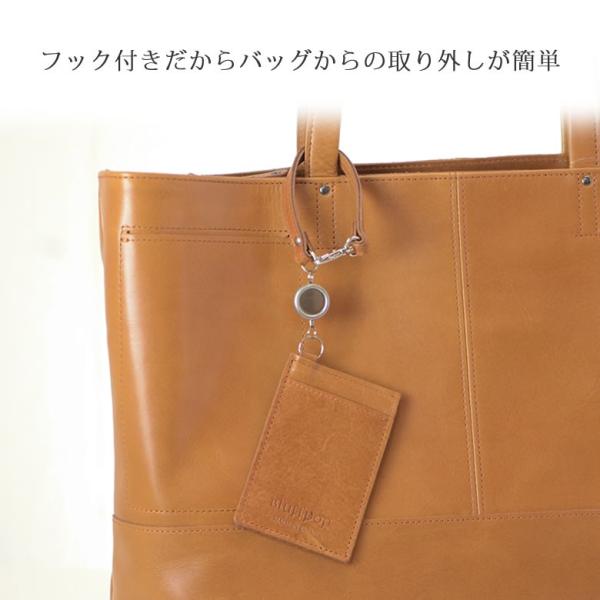 上質な牛革を使用しているから、長くご愛用いただけます。片手でサッと取り出せるリール付きパスケースは贈り物にもピッタリです。