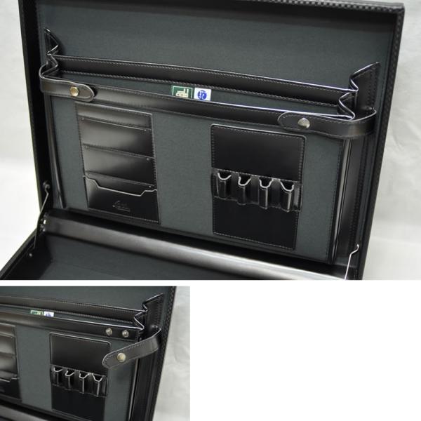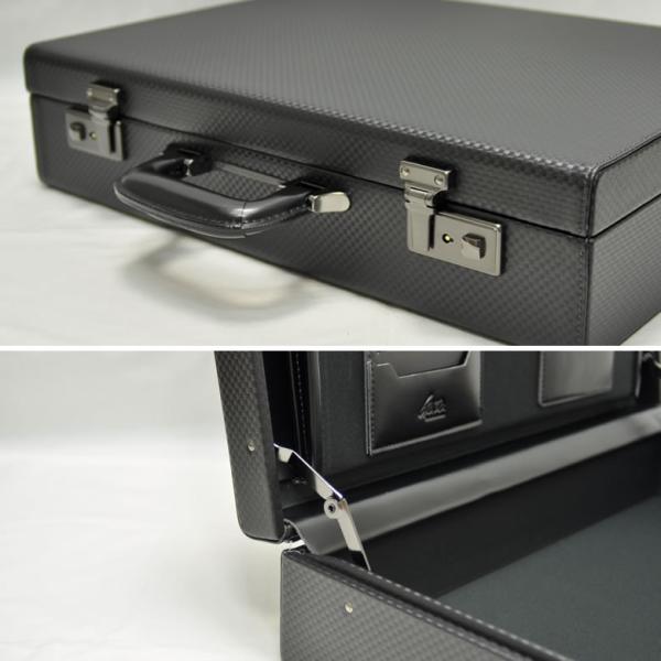 ・合成皮革でありながら、金属的なイメージを醸し出しているGAZA(ガザ)のATTACHECASE(アタッシュケース)。・現在国産では数社しかできない特別な工法で作り上げている価値ある逸品です。・その特別な工法とはケースの箱枠に軽さと強度を両立させた4.5mmのベニヤ合板を使用し、合成皮革を特殊接着剤で張り込んでいます。・日本人の手のサイズに合わせたオリジナルハンドルや蝶番・ステーなど厳選された部材を使用した最高峰のアタッシュケース。・A3ファイルサイズまで収納可能のメインルームは2段の仕切りポケット、ダブルホック付き。