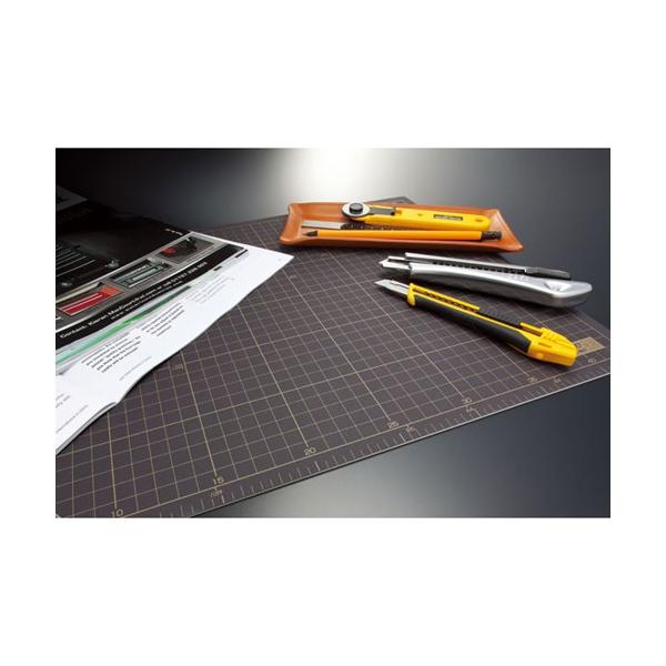 ソフトな刃当たりで、快適なカッティングを実現するカッターマット。軟・硬・軟のサンドイッチ構造で、両面とも使えます。カラーは表面は目にやさしいソフトグレー、裏面は落ち着いた雰囲気のブラウン。両面に1cm刻みの便利なグリッド入り。