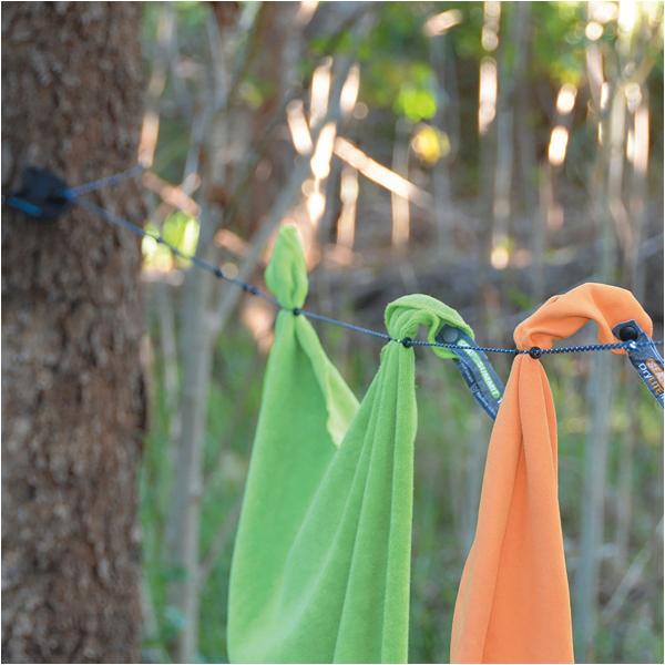 軽量コンパクトな洗濯ひも。風で洗濯物がビーズをスライドさせて洗濯物を保持することができます。