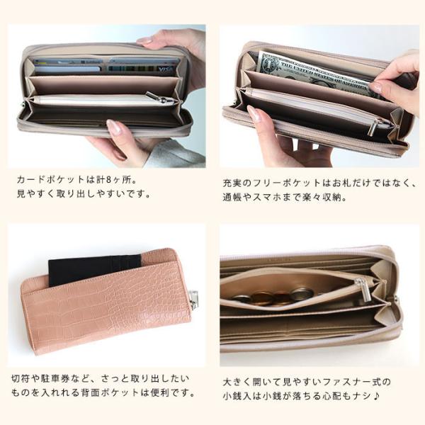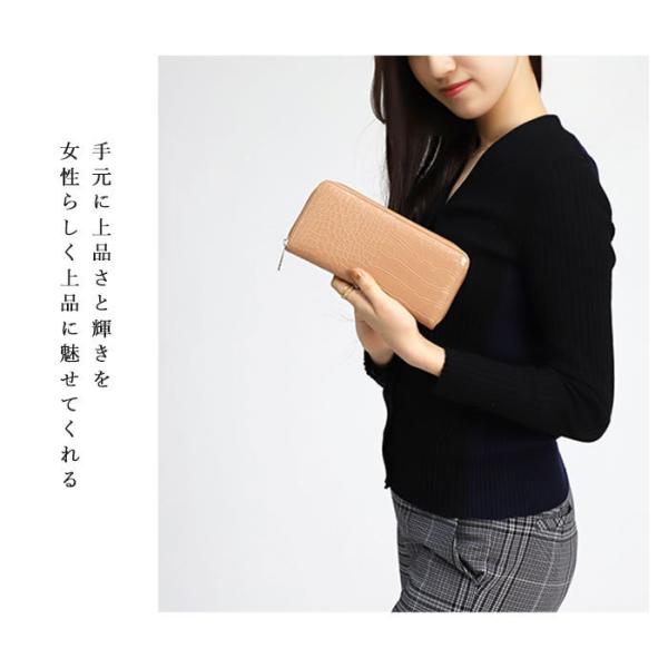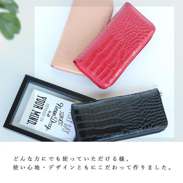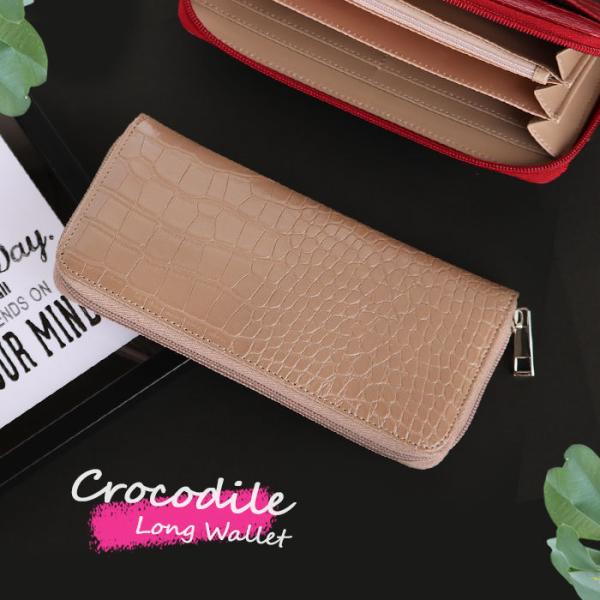 長財布 レディース 財布 クロコ柄 ラウンドファスナー財布