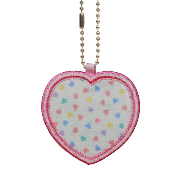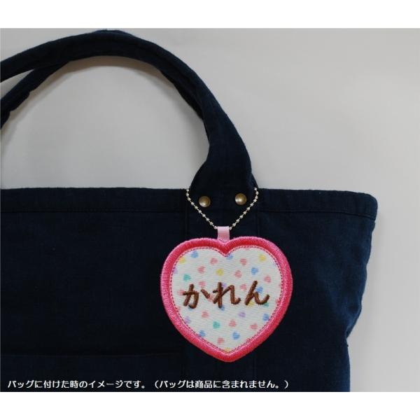 キッズ お名前タグ(名入れキーホルダー) ハート3 na-haato3 カラフルハート柄 茶色系縁色 名前刺繍糸茶色系