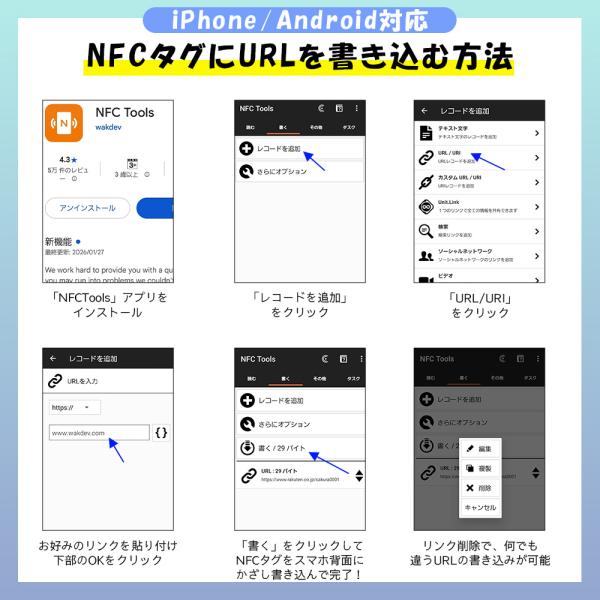 お気に入りの曲や動画・アプリ・LINE交換・インスタ表示・ビジネスデータなどのURLをタグに書き込むだけで簡単に管理できます♪
