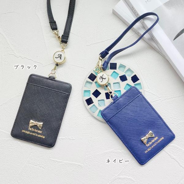 パスケース リール付き レディース 定期入れ ID IC カード 入れ カードホルダー 名入れ ストラップ カードケース 高校生 レザー 薄型 イニシャル シール