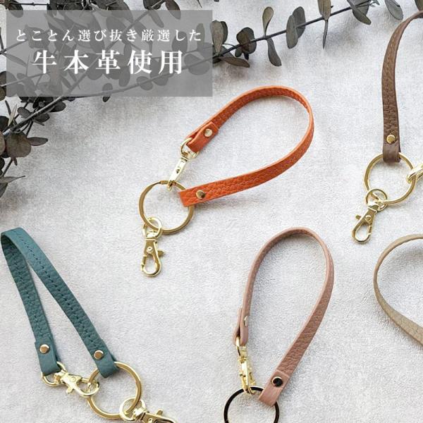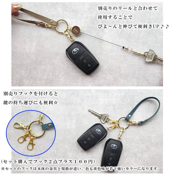 ストラップ 本革 ストラップ紐 革 レザー ハンドストラップ キーホルダー キーリング くすみカラー レディース リール 名入れ イニシャル 別売り MERCOLEDi