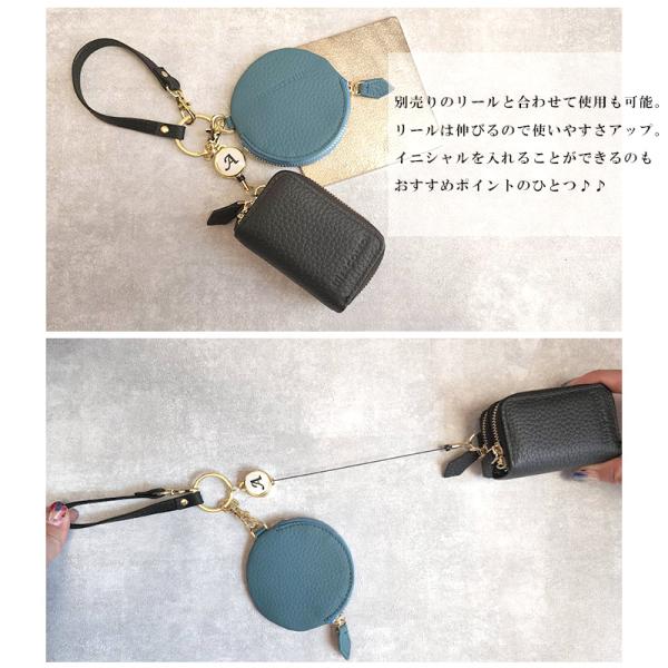 パスケース リール付き レディース 定期入れ ID IC カード 入れ カードホルダー 名入れ ストラップ カードケース 高校生 レザー 薄型 イニシャル シール