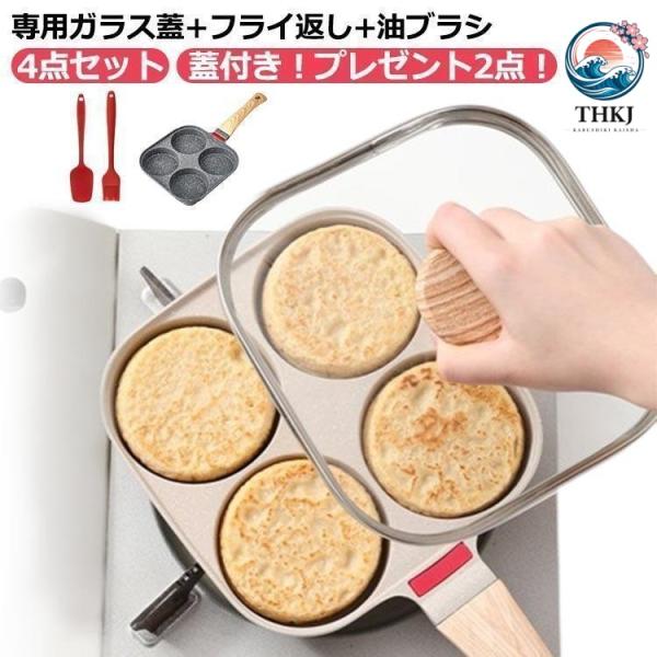 仕切りフライパン フライパン 4つ仕切り お弁当 目玉焼き ih ガス IHガス兼用 大判焼き 卵焼き器 4穴 フッ素加工 4点組 鍋蓋付き 蓋付き