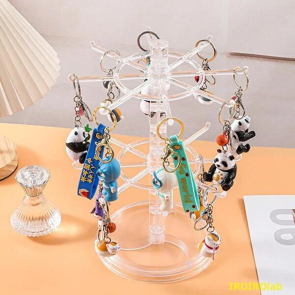 1pc 2層3層回転式16フック収納ラック キーホルダーディスプレイラック用調整可能な底面距離付き 玄関 眼鏡 ジュエリーアクセサリー