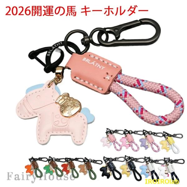 SNSで話題 全12色 馬と蹄鉄のキーホルダー 幸運 開運 馬 バッグチャーム ロープ付き キーホルダー 本革 レザー 午年 グッズ うま モチーフ アクセサリー 革小