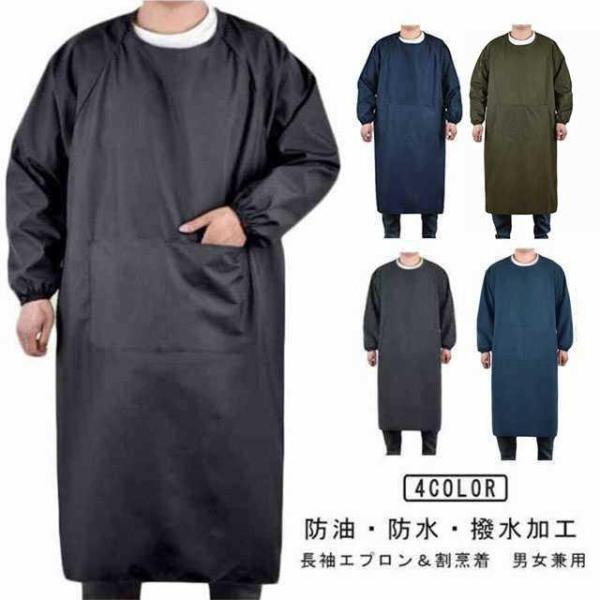 割烹着 ワーフエプロン 大人 防水エプロン ゆったり 長袖 THKJ 防油 メンズ 袖付きエプロン スモック 撥水加工 ガーデニング ポケット付き おしゃれ きれいめ