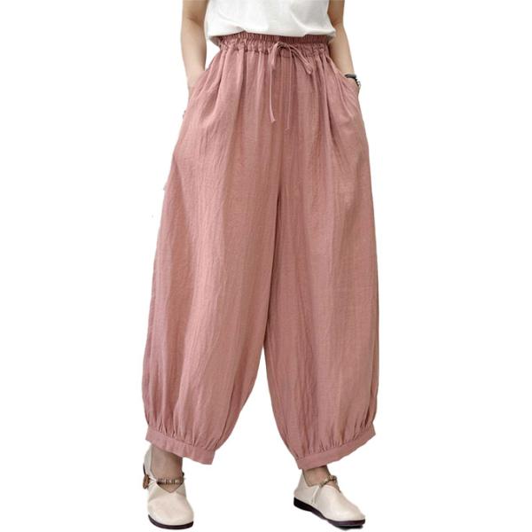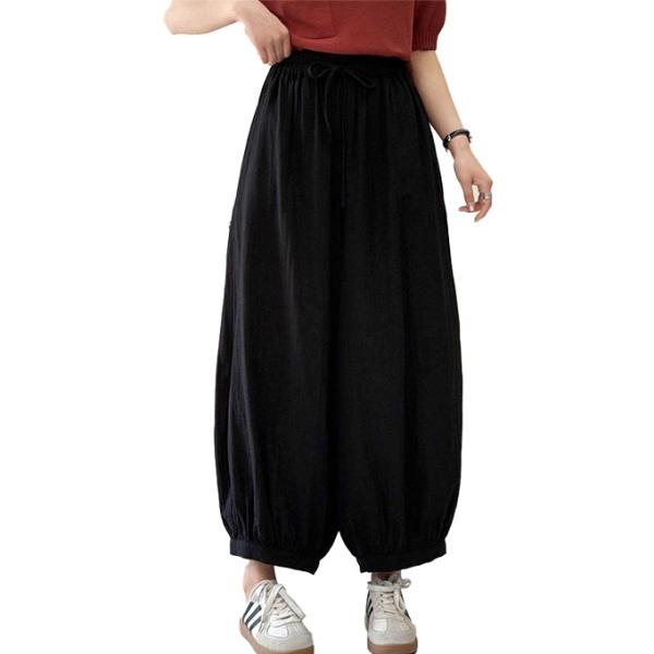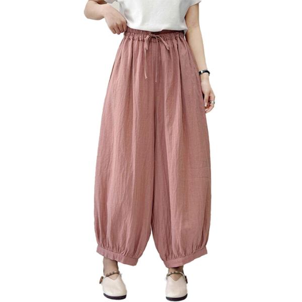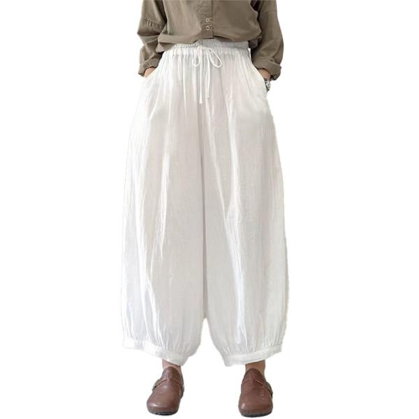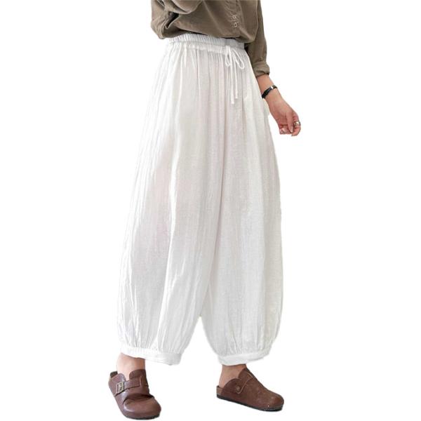 綿ダブルガーゼ パンツ レディース 春 ウエストゴム ゆったり コクーン ワイド ナチュラル 体型カバー ボトムス 9分丈 8分丈 ボリューム 綿100% 体型カバー