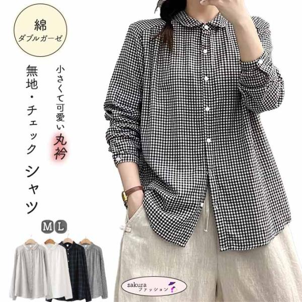ダブルガーゼ シャツ レディース 春 夏 秋 冬 M L XL 2XL 10カラー 綿シャツ 綿100% ブラウス 長袖 シャツ 2重ガーゼ 綿 コットン 通