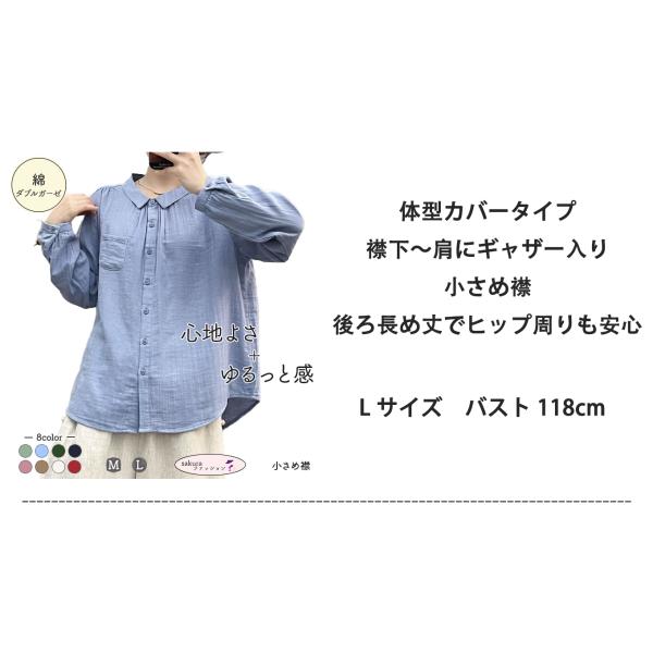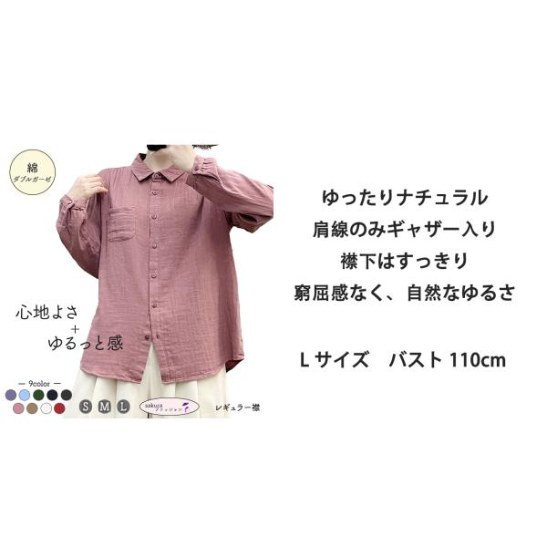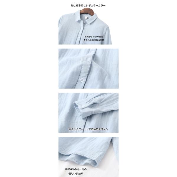 [20%OFFクーポン発行中] ダブルガーゼ シャツ レディース 春 夏 秋 冬 M L XL 2XL 10カラー 綿シャツ 綿100% ブラウス 長袖 シャツ 2重ガーゼ 綿 コットン 通
