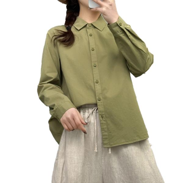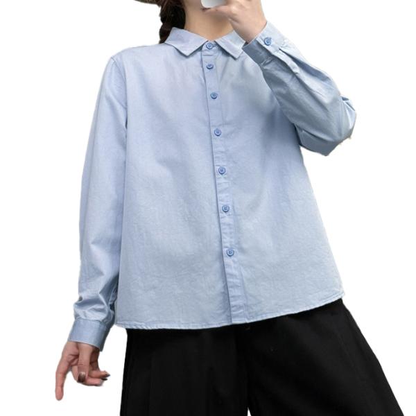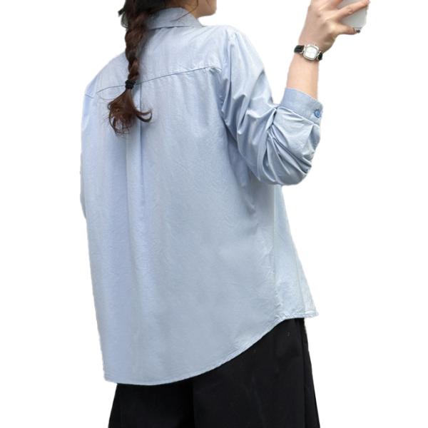 綿シャツ レディース 春 夏 秋 冬 綿100% M L XL 綿ツイル シャツ オフィス 会社 ブラウス 長袖 定番シャツ ベーシック ペール調カラー コットン ブルー 白 ホ